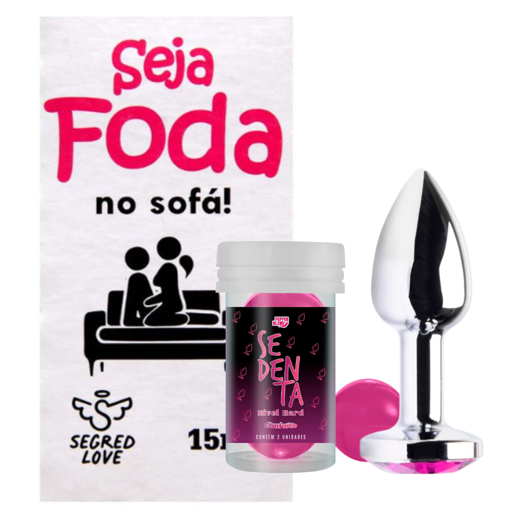 Descubra novas sensações com o Kit Sedenta: prazer, conforto e ousadia em um só combo. O Ball Sedenta Nível Hard intensifica as preliminares com lubrificação comestível, aroma envolvente e muito mais excitação — perfeito a sós ou a dois. Para quem busca experiências ainda mais intensas, o Gel Anal Seja Foda No Sofá traz lubrificação, anestesia suave e sensação pulsante, proporcionando segurança e prazer no sexo anal. Fechando o kit com elegância, o Plug Anal PP em Metal Cromado da Vipmix acrescenta um toque de luxo e novas possibilidades de exploração, podendo ser usado quente ou frio para elevar o prazer. Um kit criado para quem tem sede de sentir mais.